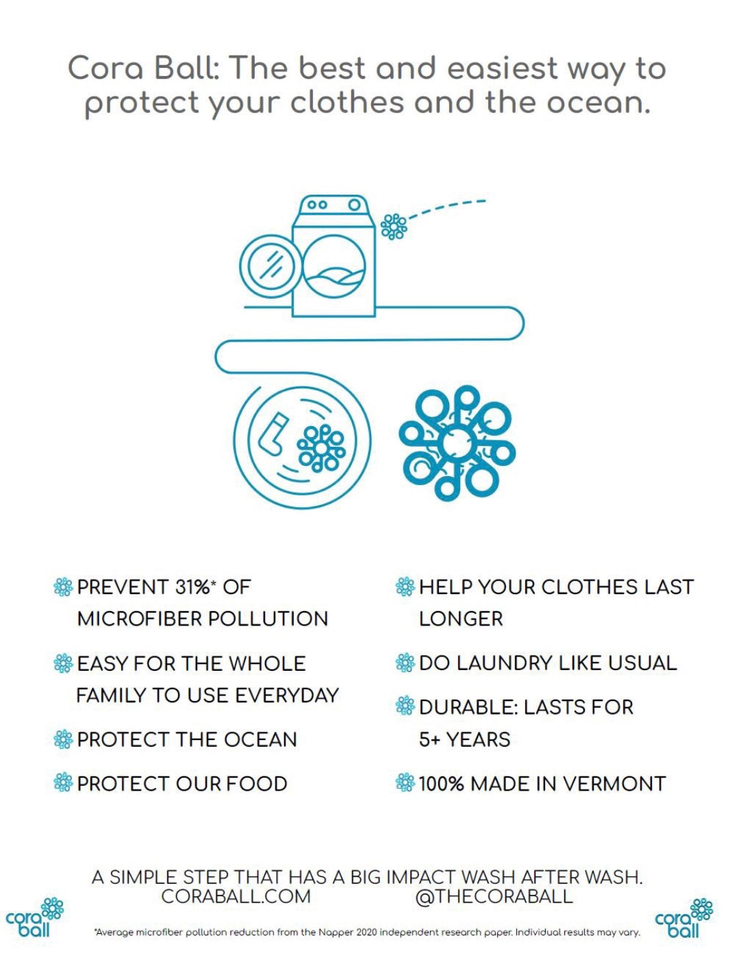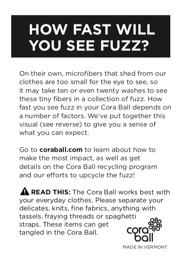 You put your Cora Ball into each wash. The microplastics will collect in the centre of the Cora Ball (resembling fluff) after months of use. You then remove this fluff and put it into your landfill bin.