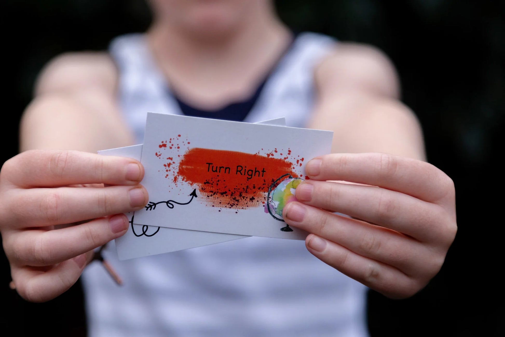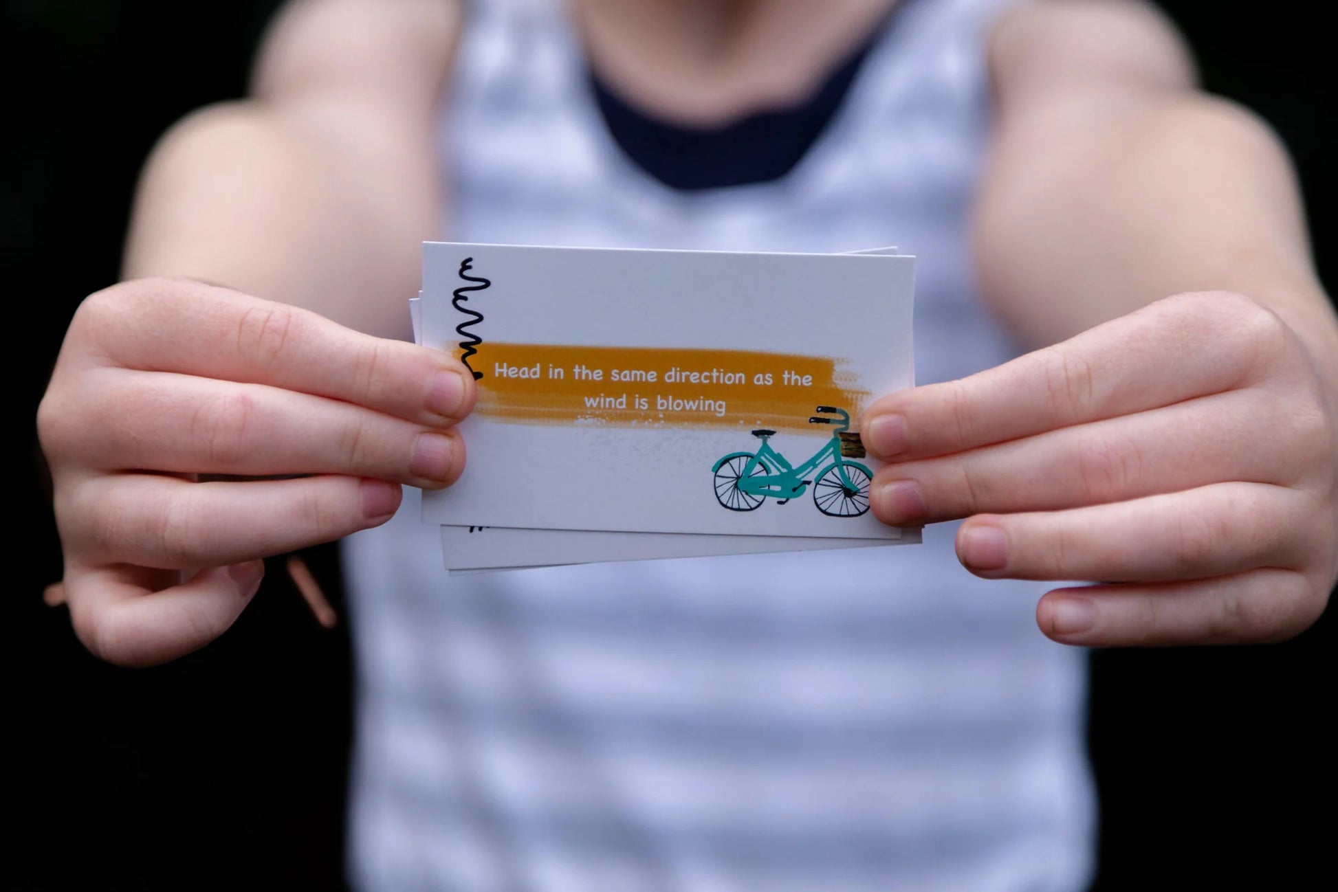 It contains 26 “misdirection cards” which give you random directions to (things like turn left, follow a blue car, head in the direction the wind is blowing) to get you being mindfully random in your exploration.