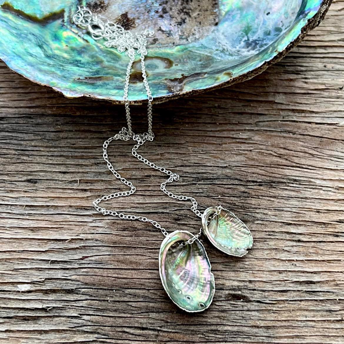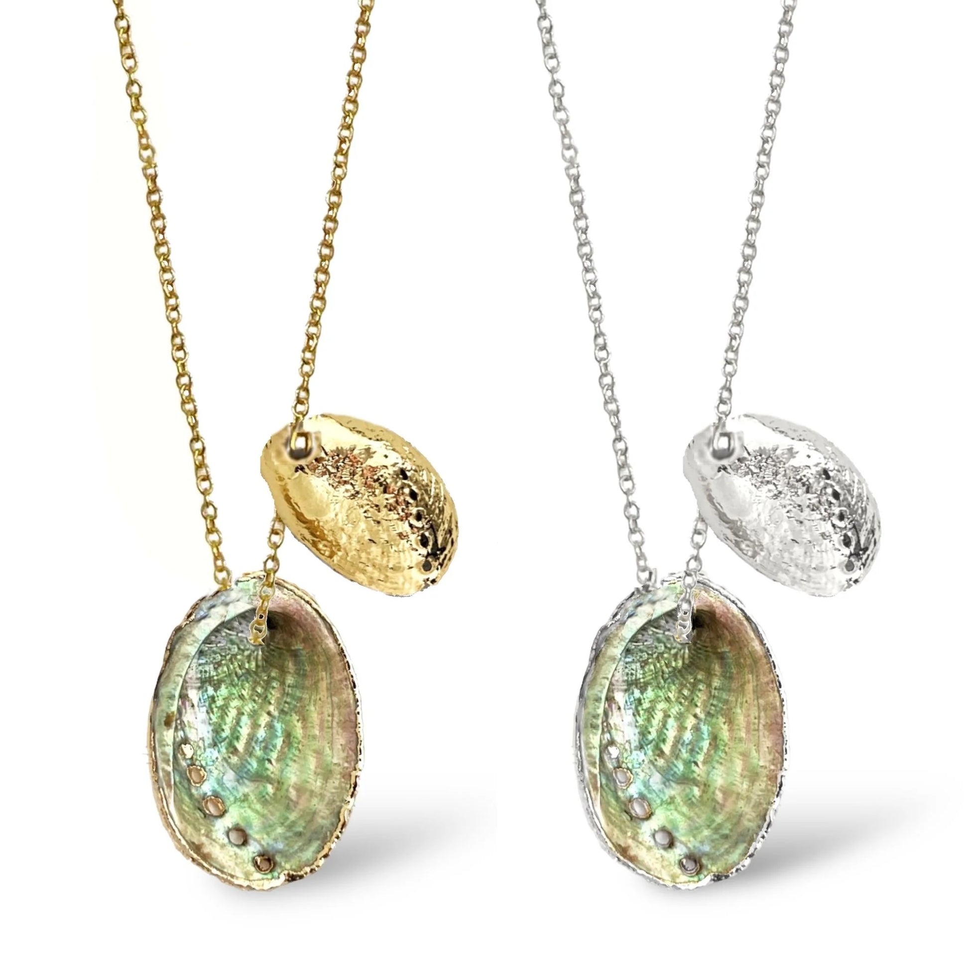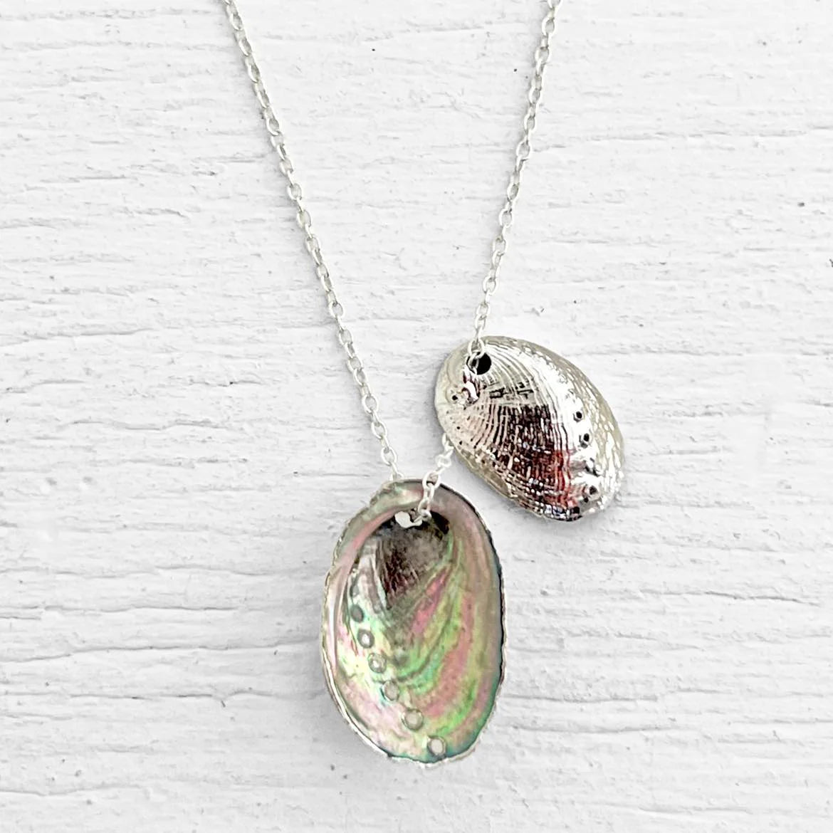 Introducing our Paua Shell Mother & Child Necklace, a true celebration of the bond between a mother and her child. Crafted from a pair of genuine mini farmed paua shells, together they hang loosely on a fine sterling silver chain.