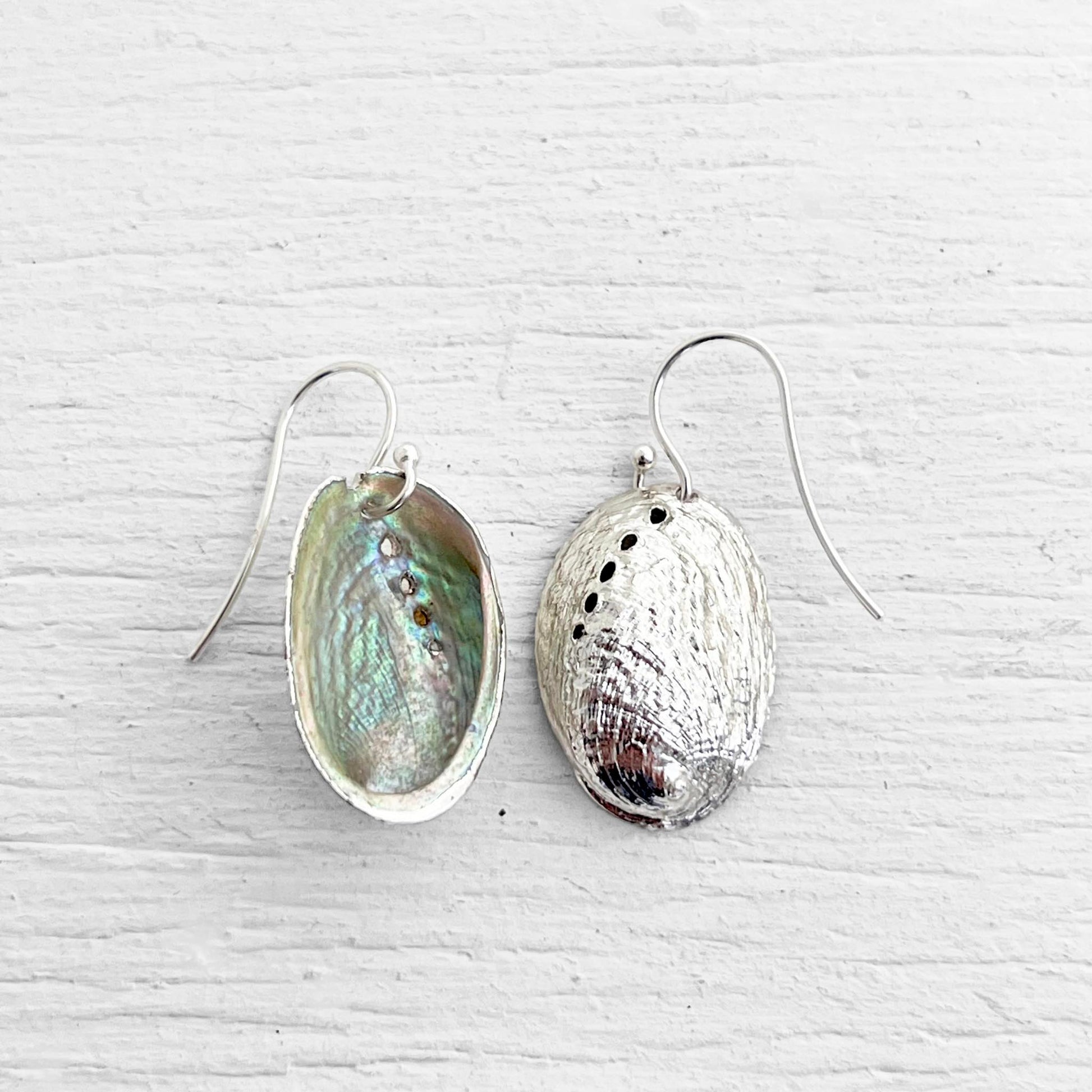 Pāua shell silver French hook earrings
