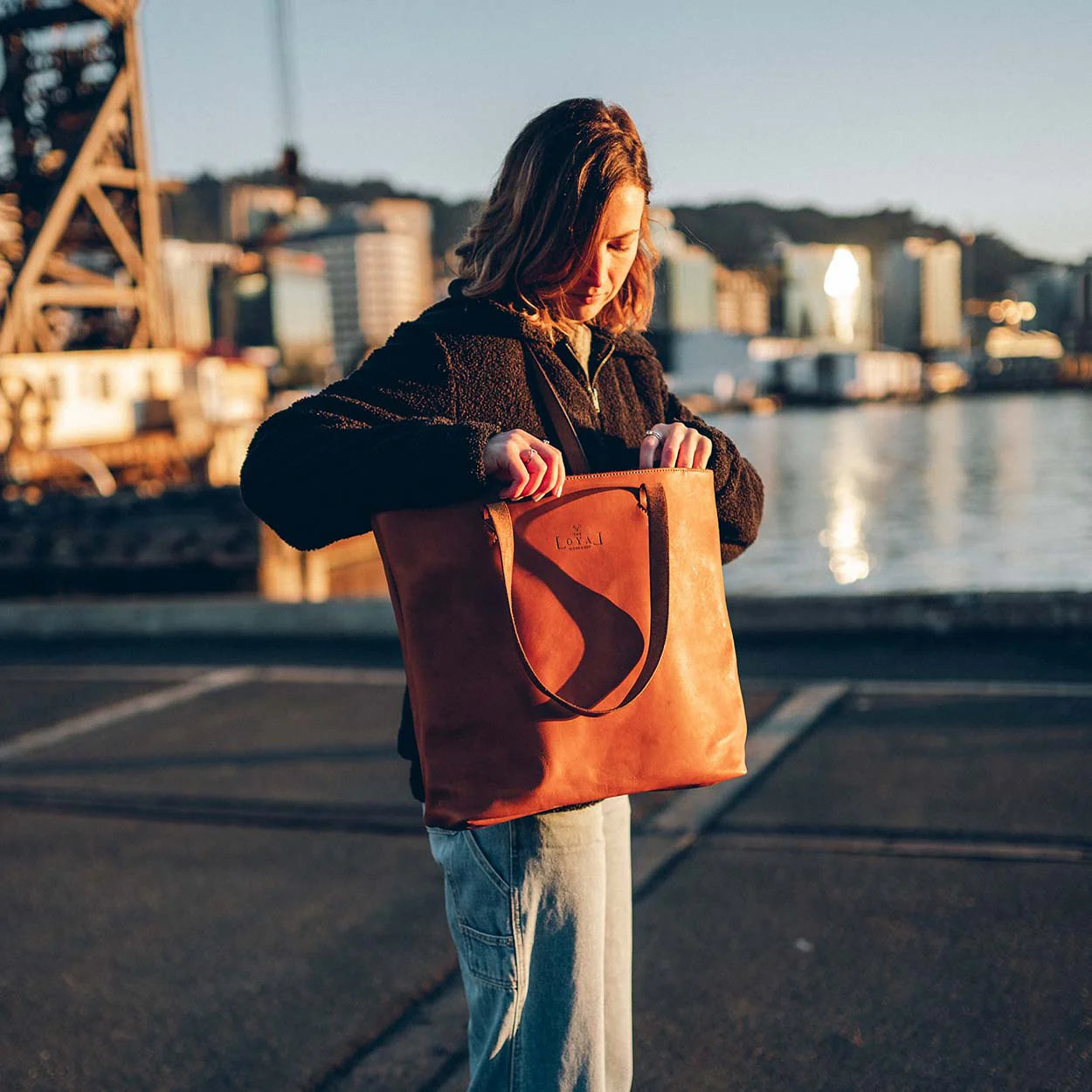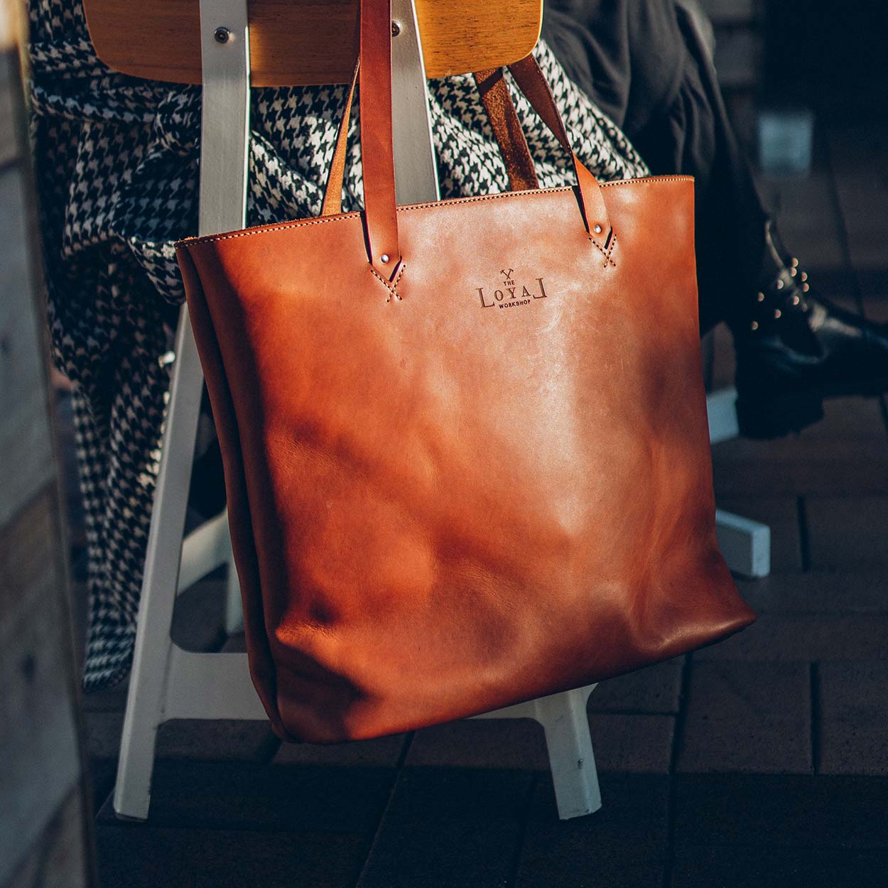 Hand stitched in distinctive, vegetable tanned leather, each Rosa Tote is truly one of a kind.