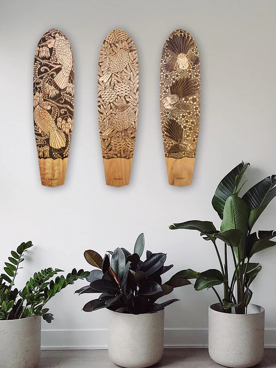 - This macrocarpa blonde beauty is our take on the retro skateboard shape but is designed specifically for wall hanging only.