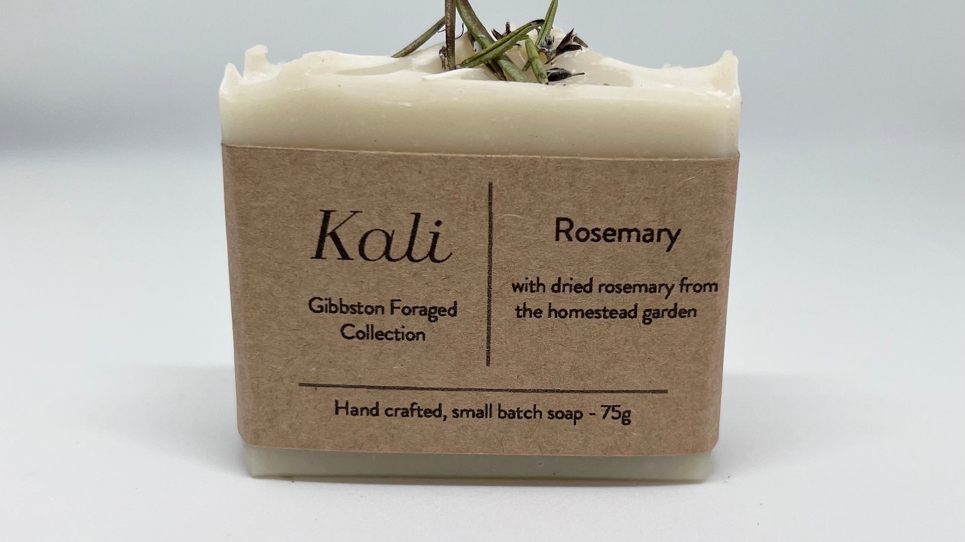 Ingredients: Coconut oil, olive oil, rice bran oil, water, sodium hydroxide, sodium lactate, lemon essential oil, rosemary essential oil, european clay, dried rosemary leaves.